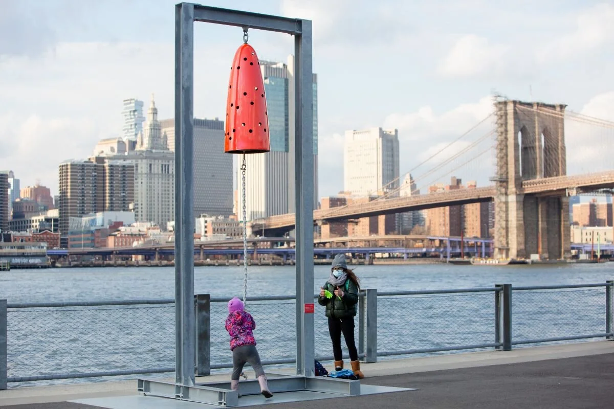On view at Brooklyn Bridge Park, Davina Semo has created five cast bronze bells to be rung by visitors in the park, recalling the maritime communication once common at this waterfront site. A ringing bell organizes our civic life, inviting us to come together in public space. Its unmistakable sound marks the hours, calls us to assemble, alerts us to danger, and announces momentous occasions.