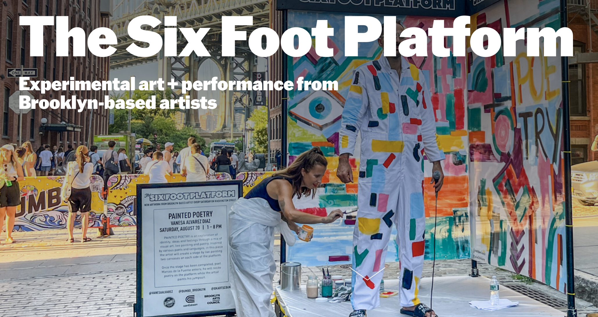 The Six Foot Platform returns this fall, and with it, Washington Street “will transform into an epicenter of performance art”! For a fifth year Dumbo, Brooklyn & BAC present experimental performance by Brooklyn-based artists on car-free Washington Street, Saturdays from 12-6pm.