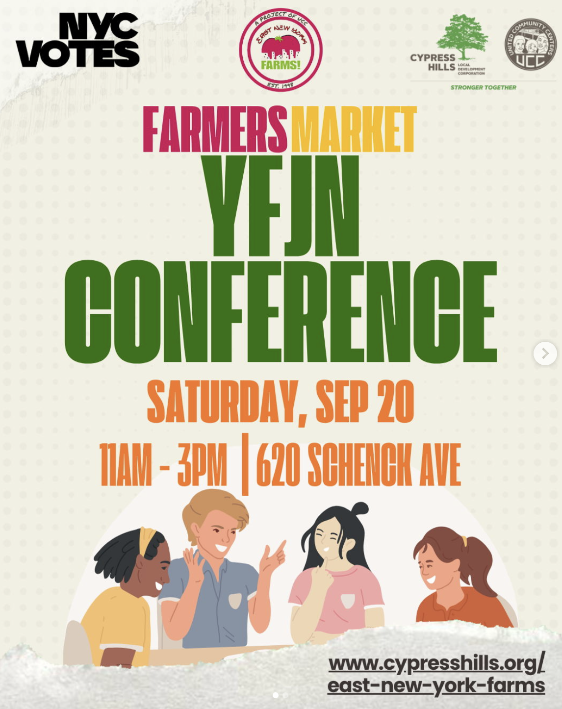 Youth Food Justice Network's (YFJN) Annual Youth Food Justice Conference is an event that highlights young people working in urban agriculture, food justice, and advocacy-related work across New York City. Each year, we bring together organizations working towards food justice and sustainability goals to students in a day of learning with and from each other. So far this year's conference will feature workshops from YFJN, Wyckoff House Farms, Green Guerillas, BK Rot, NYC Votes and Youth Food Advocates!
