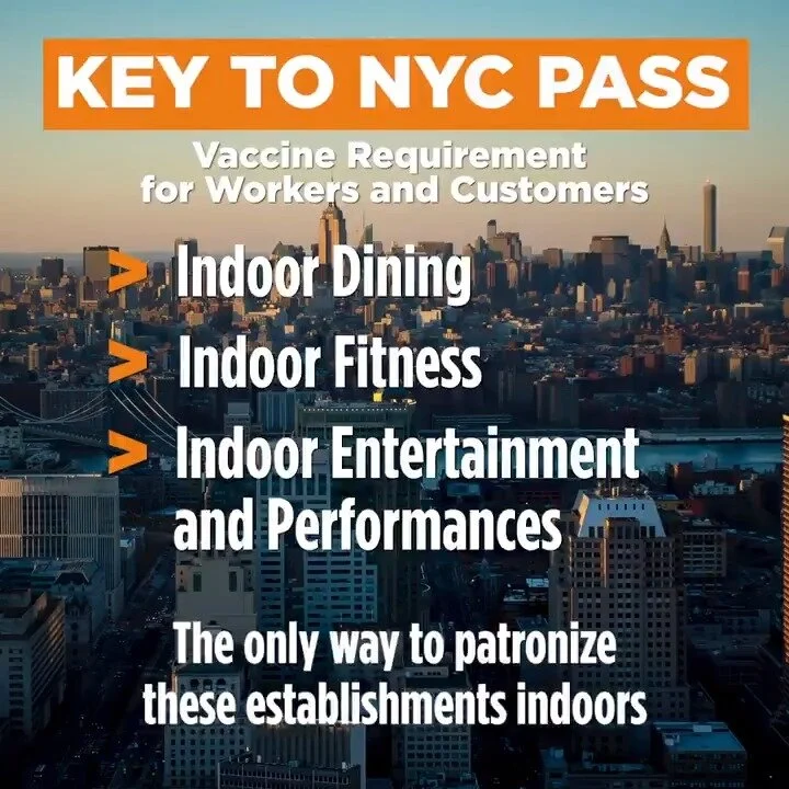 As of August 17, people 12 and older are required to show proof they have received at least one dose of a COVID-19 vaccine authorized for emergency use by the FDA or WHO. This new requirement — called the Key to NYC — includes bars, fitness gyms, movie and stage theatres, museums and other indoor venues. Staff at these locations are also required to be vaccinated.
